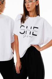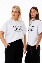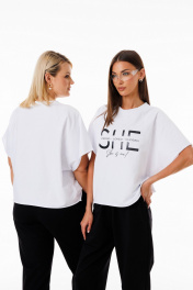Белый джемпер из футера с принтами и свободным стилем Kivviwear 4267.10