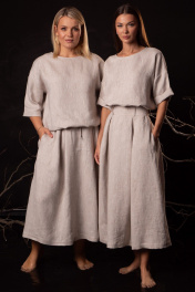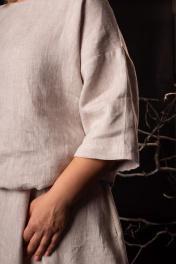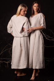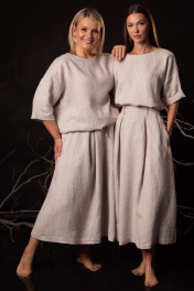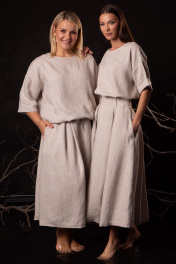 Элегантный костюм премиум-класса из белорусского льна с вискозой премиального качества — идеальный баланс романтики, практичности и экологичности. Набор включает джемпер свободного прямого кроя со съемным декоративным бантом и длинную юбку с эффектными встречными складками, боковыми карманами и потайной молнией. Натуральные материалы обеспечивают легкость, воздухопроницаемость и гипоаллергенность, сохраняя безупречный вид в любых ситуациях. Джемпер: Свободный силуэт с круглым вырезом и съемным бантом в комплекте позволяет создавать два образа в одном — лаконичный базовый лук или утонченный акцент с романтичным штрихом. Мягкая ткань из льна и вискозы не стесняет движений, а разнообразные оттенки делают его универсальной основой для капсульного гардероба. Юбка: Длинная модель с глубокими встречными складками визуально вытягивает силуэт, добавляя образу женственности и динамики. Боковые карманы в швах сохраняют практичность, а потайная молния на спинке обеспечивает аккуратную посадку без нарушения чистоты линий. Свободный крой и эластичный пояс на резинке гарантируют комфорт в течение всего дня. Параметры моделей на фото: 1. Рост 175, ОБ 115, ОТ 78, ОГ 96. Изделие на фото 52 XXL 2. Рост 175, ОБ 89, ОТ 60, ОГ 80. Изделие на фото 42 XS" Рекомендуется только деликатная стирка 30 градусов, не использовать отбеливатели, изделие вывернуть наизнанку