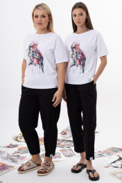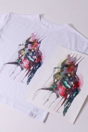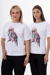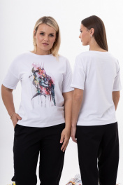 Женская футболка с эксклюзивными арт-принтами | Коллаборация с художницей Ольгой Южик Instagram:@yuzhikolga88 Уникальная футболка воплощающая творческий дух коллаборации с талантливой художницей Ольгой Южик. На футболках нанесены эксклюзивные принты, созданные по мотивам её картин, которые можно увидеть в Instagram @yuzhikolga88. Каждая линия и оттенок отражают авторский стиль художницы, сочетающий абстракцию, эмоциональность и гармонию природы. Дизайн, вдохновленный искусством: • Спущенный рукав и прилегающий крой создают непринужденный силуэт в стиле, подчеркивающий комфорт и современную эстетику. • Эксклюзивные принты по мотивам картин — это деталь, которая превращает футболку в арт-объект. • Принты нанесены методом качественной цифровой печати. Премиум-качество и универсальность: Футболка изготовлена из мягкого хлопка с добавлением эластана, который обеспечивает идеальную посадку, ткань прекрасно дышит и обеспечивает легкость. Нейтральная белая база позволяет принтам оставаться главным акцентом, сочетая футболку с джинсами, юбками, пиджаками или oversize-кардиганами. Дополните свой гардероб футболкой, которая говорит за вас. Это больше, чем мода — это диалог с искусством, где ваше тело становится холстом для авторских идей @yuzhikolga88. Параметры моделей на фото: 1. Рост 175, ОБ 115, ОТ 78, ОГ 96. Изделие на фото 52 XXL 2. Рост 175, ОБ 89, ОТ 60, ОГ 80. Изделие на фото 42 XS" Рекомендуется только деликатная стирка 30 градусов, не использовать отбеливатели, изделие вывернуть наизнанку