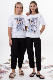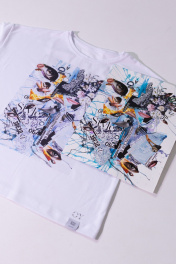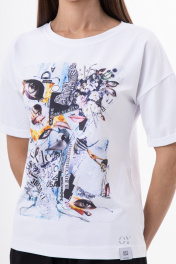 Женская футболка с эксклюзивными арт-принтами | Коллаборация с художницей Ольгой Южик Instagram:@yuzhikolga88 Уникальная футболка воплощающая творческий дух коллаборации с талантливой художницей Ольгой Южик. На футболках нанесены эксклюзивные принты, созданные по мотивам её картин, которые можно увидеть в Instagram @yuzhikolga88. Каждая линия и оттенок отражают авторский стиль художницы, сочетающий абстракцию, эмоциональность и гармонию природы. Дизайн, вдохновленный искусством: • Спущенный рукав и прилегающий крой создают непринужденный силуэт в стиле, подчеркивающий комфорт и современную эстетику. • Эксклюзивные принты по мотивам картин — это деталь, которая превращает футболку в арт-объект. • Принты нанесены методом качественной цифровой печати. Премиум-качество и универсальность: Футболка изготовлена из мягкого хлопка с добавлением эластана, который обеспечивает идеальную посадку, ткань прекрасно дышит и обеспечивает легкость. Нейтральная белая база позволяет принтам оставаться главным акцентом, сочетая футболку с джинсами, юбками, пиджаками или oversize-кардиганами. Дополните свой гардероб футболкой, которая говорит за вас. Это больше, чем мода — это диалог с искусством, где ваше тело становится холстом для авторских идей @yuzhikolga88. Параметры моделей на фото: 1. Рост 175, ОБ 115, ОТ 78, ОГ 96. Изделие на фото 52 XXL 2. Рост 175, ОБ 89, ОТ 60, ОГ 80. Изделие на фото 42 XS" Рекомендуется только деликатная стирка 30 градусов, не использовать отбеливатели, изделие вывернуть наизнанку