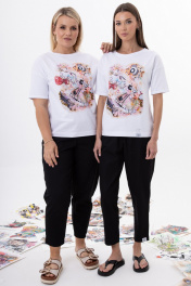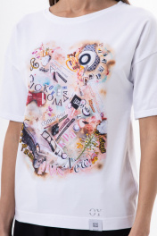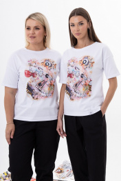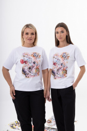 Женская футболка с эксклюзивными арт-принтами | Коллаборация с художницей Ольгой Южик Instagram:@yuzhikolga88 Уникальная футболка воплощающая творческий дух коллаборации с талантливой художницей Ольгой Южик. На футболках нанесены эксклюзивные принты, созданные по мотивам её картин, которые можно увидеть в Instagram @yuzhikolga88. Каждая линия и оттенок отражают авторский стиль художницы, сочетающий абстракцию, эмоциональность и гармонию природы. Дизайн, вдохновленный искусством: • Спущенный рукав и прилегающий крой создают непринужденный силуэт в стиле, подчеркивающий комфорт и современную эстетику. • Эксклюзивные принты по мотивам картин — это деталь, которая превращает футболку в арт-объект. • Принты нанесены методом качественной цифровой печати. Премиум-качество и универсальность: Футболка изготовлена из мягкого хлопка с добавлением эластана, который обеспечивает идеальную посадку, ткань прекрасно дышит и обеспечивает легкость. Нейтральная белая база позволяет принтам оставаться главным акцентом, сочетая футболку с джинсами, юбками, пиджаками или oversize-кардиганами. Дополните свой гардероб футболкой, которая говорит за вас. Это больше, чем мода — это диалог с искусством, где ваше тело становится холстом для авторских идей @yuzhikolga88. Параметры моделей на фото: 1. Рост 175, ОБ 115, ОТ 78, ОГ 96. Изделие на фото 52 XXL 2. Рост 175, ОБ 89, ОТ 60, ОГ 80. Изделие на фото 42 XS" Рекомендуется только деликатная стирка 30 градусов, не использовать отбеливатели, изделие вывернуть наизнанку