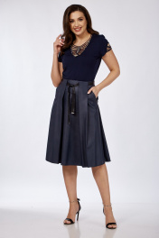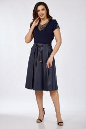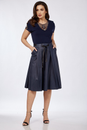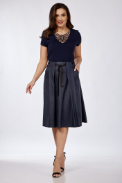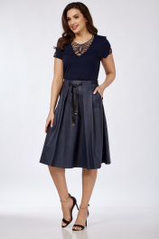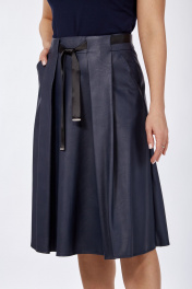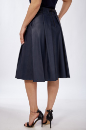 Демисезонная кожаная юбка с карманами и складками Klever 225 синий_матовый