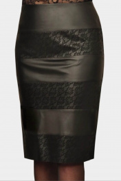 Юбка-карандаш из экокожи и кружева с молнией Klever 279 черный_кружево