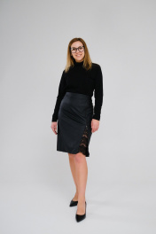 Юбка из эко-кожи с кружевом и молнией черная Klever 297 черный