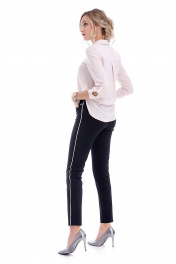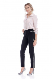 Брюки женские облегающего силуэта, заужены к низу. Застежка петля, пуговица, молния. На передних частях выполнены боковые карманы с отрезными бочками. Украшением служит декоративная лента на левом кармане. По спинке выполнены талиевые вытачки и прорезные карманы-имитация с планками. В боковые швы вшит серебристый кант. Посадка высокая. Длина шагового шва 78-81 см в зависимости от размера. Размеры 44-46-48-50-52-54 Объем талии 72-76-80-84-88-92 Объем бедер 96-100-104-108-112-116. Бережная стирка при 30 градусах!