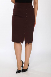 Деловая юбка из текстиля с пуговицами и шлицей Klever 382 горький_шоколад