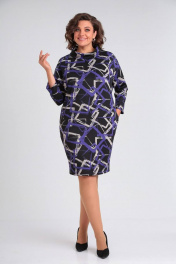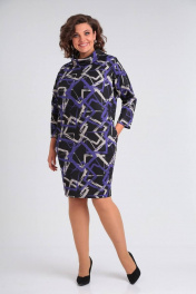 Комфортное женское платье из трикотажного полотна с оригинальным принтом . Силуэт прямой, слегка заужен к низу. В боковых швах карманы, по спинке в среднем шве небольшой разрез Воротник-хомут. Линия плеча слегка опущена, длина рукава 7/8.