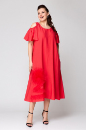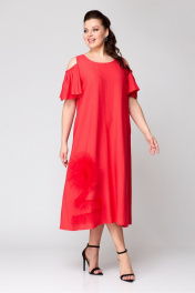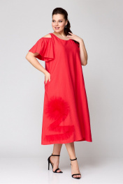 Платье на каждый день удлиненное с цветочной сеткой Koketka i K 1141-2 красный
