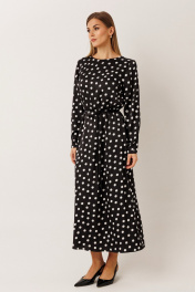 Платье: – прямой силуэт – принт в горошек – застёжка по спинке на петлю-пуговицу – в комплекте пояс для акцентирования линии талии – эффектное, лаконичное и универсальное