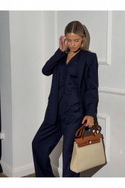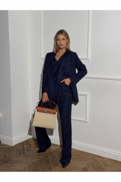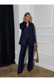 Брюки палаццо средней ширины, с двумя складками выходящими из пояса, верхний срез брюк обработан притачным поясом, дополнен практичными шлевками для ремня, карманы хулиганы, функциональные. Уход за изделием: деликатная стирка не выше 30 градусов. Длина по боковому шву – 113 см. К брюкам имеется жакет арт. 11Р31, жилет арт. 4G7