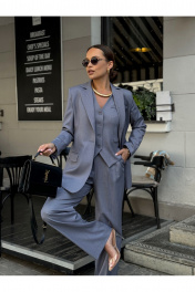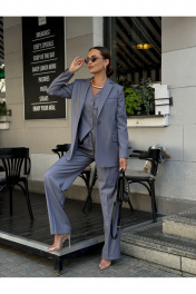 Жилет женский укороченный, полуприлегающего силуэта, центральная застежка на петли-пуговицы, однобортный, таливые выточки по переду, карман оформлен 2 листочками, нефункциональный. Спинка из двух частей со швом посередине, по талии завязки. Воротник пиджачного типа с острыми углами. Уход за изделием: химчистка Длина по спинке – 49 см. К жилету можно приобрести брюки палаццо арт. 16BR3, жакет арт. 11Р30