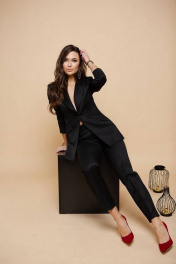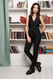 Брюки классические со стрелкой, на притачном поясе зауженные к низу, застегиваются на «Гульфик» и крючок. По переду карманы хулиганы, функциональные. К брюкам можно приобрести: Жакет 10 Р2; Жилет 4 J2. Уход за изделием: химчистка.