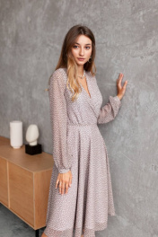 Платье KRASA - Danaida 247-21 шифон_беж_в_горох