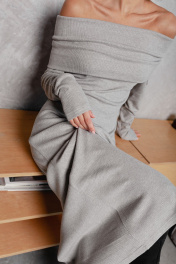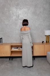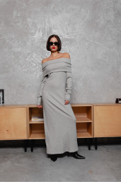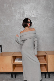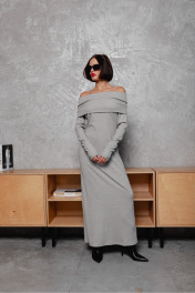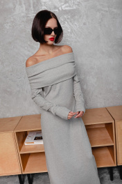 Круглосезонное облегающее платье с открытыми плечами Krasa М370-24 серый