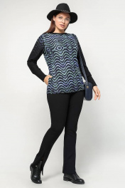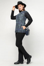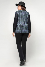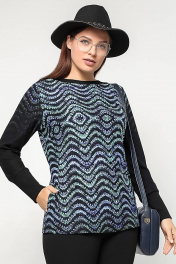 Демисезонный прямой джемпер из вискозы и трикотажа с карманами La rouge 3195 черный-набивной