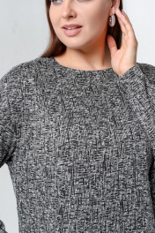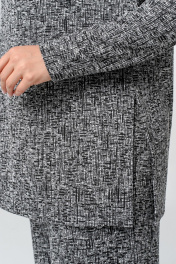 Свободного силуэта со спущенной линией плеча и длинным втачным рукавом. Перед с нагрудными вытачками. В боковых швах разрезы. Полотно – плотный меланжевый трикотаж. Рост 170.