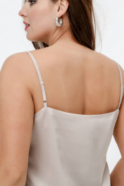 Нарядный женский топ трапециевидного силуэта с фигурным вырезом горловины и нагрудными вытачками. Тонкие бретели с регуляторами. Ткань - однотонный сатин. Рост 170.