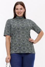 Женский джемпер, водолазка полуприлегающего силуэта с воротником - стойкой и коротким втачным рукавом. Полотно - трикотажная набивная вискоза. Рост 164.