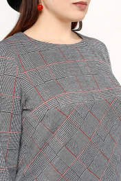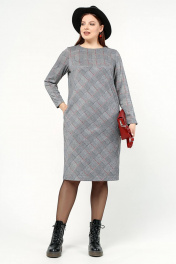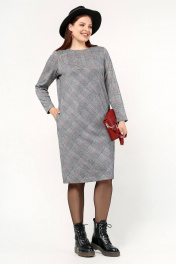 Платье прямого силуэта с круглым вырезом горловины и длинным втачным рукавом. Декорировано эффектной тесьмой с люрексом. Карманы в боковых швах обеспечивают дополнительный комфорт в носке. Выполнено из трикотажного полотна в клетку.
