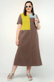 Платье трапециевидное с коротким рукавом и карманами La rouge 5382 капучино