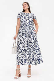Платье из штапеля с ремнями и разрезами в летнем стиле La rouge 5460 белый-набивной
