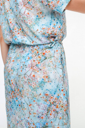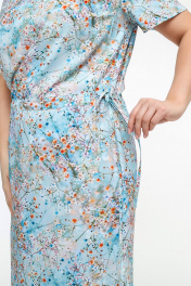 Платье прямого силуэта с короткими рукавами и разрезом La rouge 5463 голубой-(цветы) - фото 5