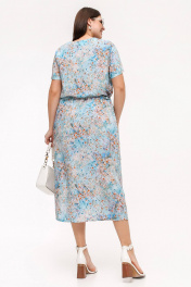Платье прямого силуэта с короткими рукавами и разрезом La rouge 5463 голубой-(цветы) - фото 2