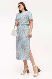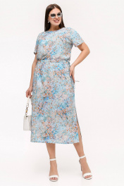 Платье прямого силуэта с короткими рукавами и разрезом La rouge 5463 голубой-(цветы) - фото 1