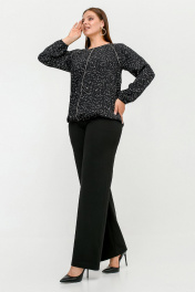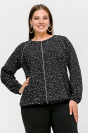 Женская блузка свободного силуэта с рукавом регланом. По переду и в швах втачивания рукавов- декоративные канты. Низ рукава и низ изделия - на резинке. Ткань - набивной штапель. Рост 164.
