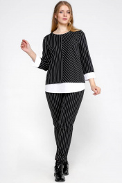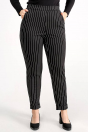 Черные зауженные брюки с карманами и эластичным поясом La rouge 8023 черно-белая-полоска