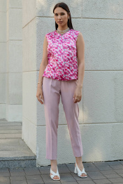 Современная и универсальная блузка без рукавов из атласа. Свободного силуэта. Низ блузки равномерно собран на эластичную тесьму шириной 1см, которая позволяет задать то положение на бедрах и ту степень напуска, которую вам необходимо. Проймы рукава обработаны бейкой из основной ткани. На передних деталях две нагрудные выточки. Вырез горловины круглый. Застежка в виде капельки на спинке. Качественная ткань, не тонкая, мягкая, очень приятная на ощупь, имеет приятный блеск. Блузка смотрится стильно и отлично подойдет, как для повседневной носки, так и для торжества. Она прекрасно сочетается с брюками, джинсами, классическими юбками карандаш. Обхват груди: 44размер-100см, 46размер-104см, 48размер-108см, 50размер-112см. Обхват талии: 44размер-104см, 46размер-108см, 48 размер-112см, 50размер-116см. Обхват бедер по резинке: 44размер-104см, 46-размер-108см, 48размер-112см, 50размер-116см. Длина изделия: 44размер-58см, 46размер-59см, 48размер-60см, 50размер-61см. Длина проймы рукава: 44размер-43см, 46размер-45см, 48размер-47см, 50размер-49см