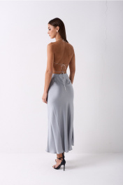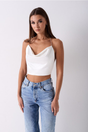 Топ нарядный, повседнеыный, на любые случаи в жизни. Топ двухслойный, выполнен из нарядной ткани с блеском и очень приятный к телу. По переду топ с небольшой спадающей качелей Спинка полностью открытая. Топ фиксируется с помошью шести тончайших завязок из прочного шнура, которой прочно зафиксирован в швах при обтачивании с помощью дополнительных скрытых узелков, что надёжно защищает завязки от непредвиденного разрыва, высыпания из припусков шва. Шнур прочный. Топ идеально смотрится как отдельно, так и в качестве дополнительной одежды под любой жакет. На концах шнура продеты маленькие бусины.