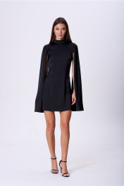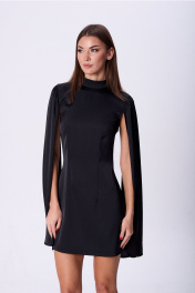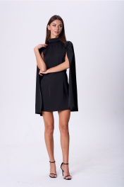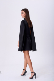 Платье нарядное полуприлегающего силуэта . Из шелковой ткани с легким с матовым блеском. По переду платья застрочены нагрудные и талиевые вытачки. Спинка со средним швом, талиевыми вытачками, с застежкой на длинную потайную тесьму-молнию по центру спинки. По низу не большая открытая шлица 10см. Воротник стойка. Рукав открытый отлетной со сборкой по окату рукава. Срезы рукава обработаны швом вподгибку в чистый край. Низ платья обметан краеобметочным швом и подшит на машине потайного стежка.