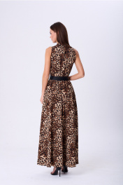 Классическое платье с воротником-стойкой и сборкой из ткани Lady Line 1580/1 светлый_леопард