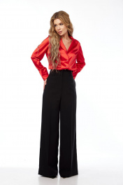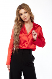 Блуза из текстиля с отложным воротником и складками Lady Line 1582 красный