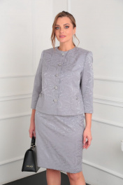Костюм 2х предметный. Состоит из жакета и юбки. Жакет и юбка на подкладке. Жакет прямого силуэта. По переду центральная бортовая застёжка на петли и пуговицы. Вырез горловины круглый. По переду два настрочных функциональных кармана. Рукав 7/8 Спинка прямая с двумя плечевыми вытачками. Длина жакета около 52см Юбка прямого слегка зауженного к низу силуэта. Верх юбки на обтачке. По центру спинки застёжка на потайную тесьму-молнию. По низу закрытая отлетная шлица. Длина юбки около 58см