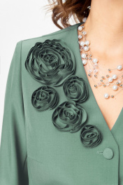 Элегантный юбочный костюм, стильный и универсальный наряд для торжественных и праздничных мероприятий. Обеспечит вашему образу максимум внимания и комплементов , благодаря безупречному подбору цвета и художественному оформлению цветочной аппликации ! Жакет с подкладкой по полочке , полуприлегающего силуэта с v образным вырезом , рукав втачной двух шовный . Юбка без подкладки, на поясе с боковыми резинками, расклешенного силуэта со складками по переду и боковыми карманами .