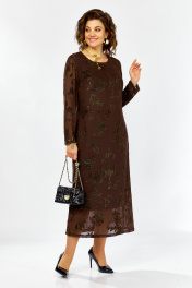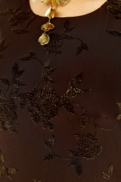 Роскошное платье на трикотажной подкладке полуприлегающего силуэта из мягкой стретч-сетки украшенной флоковым напылением с позолотой создает эффект дорогого кружевного орнамента.