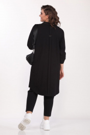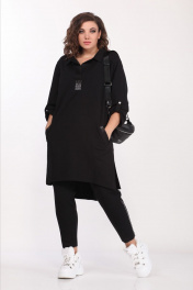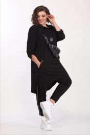 Ультрамодный городской комплект туника и брюки в стиле “спорт-шик” из ткикотажного полотна- двунитка. Воротник на широкой горловине отложной, по переду втачная планка декорирована стразами, прорезные карманы с листочкой. Низ ассиметричный, рукав на спущенной пройме с подхватом на хлястик и пуговицу. Брюки заужены к низу полуприлегающего силуэта, пояс на резинке. Имеются функциональные карманы.