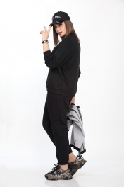 Стильный спортивный комплект тройка. Жилет свободного силуэта с капюшоном на стойке из водоотталкивающей ткани “ЛАКЕ”, уникальный бельгийский утеплитель «ISOSOFT» 100 г. на метр кв. и мембранная подкладка «Barrier». По полочкам прорезные карманы. Низ жилета при собран на эластичную тесьму. Застежка декоративная молния. Джемпер и брюки из трикотажа “друхнитка”. Рукав втачной, горловина, низ джемпера и низ рукава, отделка довяз. Брюки свободного силуэта на эластичном поясе с боковыми карманами, низ подгибка эластичной лентой со сборкой.