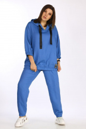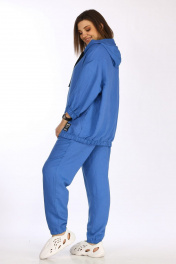 Летний костюм в спортивном стиле из умягченного льна не требующей утюжки. Худи свободного силуэта с капюшоном и боковыми карманами, рукав и низ блузона на эластичной ленте. Брюки свободного силуэта с карманами в боковых швах , пояс на резинке, без застежки.