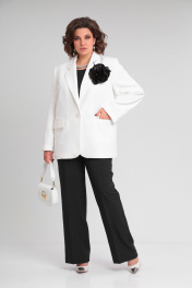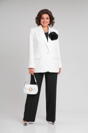 Брючный костюм женский женственный деловой классика Lady Secret 2969 молочный+черный