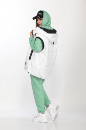 Стильный спортивный комплект тройка. Жилет свободного силуэта с капюшоном на стойке из водоотталкивающей ткани “ЛАКЕ”, уникальный бельгийский утеплитель «ISOSOFT» 100 г. на метр кв. и ветрозащитной мембранной подкладки «Barrier». По полочкам прорезные карманы. Низ жилета при собран на эластичную тесьму. Застежка декор. молния. Джемпер-худи и брюки из трикотажного хлопкового полотна “трехнитка”. Удлинённый джемпер-худи свободного силуэта с капюшоном и прорезными карманами в боковых швах, рукав втачной на спущенной пройме. Брюки свободного силуэта с прорезными карманами в боковых швах, пояс и низ на эластичной ленте со сборкой.