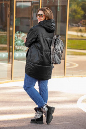 Стеганная куртка с капюшоном из ткани с водоотталкивающим эффектом, на высококачественном утеплителе для одежды ISOSOFT (Бельгия). Рукав на спущенной пройме на эластичной манжете. По полочкам прорезные карманы с листочкой. Застежка молния. Низ куртки фигурный.