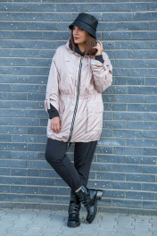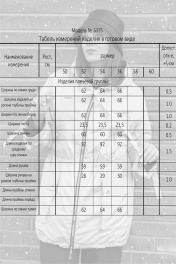 Удлиненная куртка ветровка свободного силуэта, на мембранной подкладке «Barrier», с накладными карманами и кокеткой. По отлету кокетки вставлена декоративная тесьма, для регулировки объема талии. По переду вертикальный отлет кокетки на молнии, для регулировки объема груди, внутренняя часть полочки декорирована кружевом. Рукав втачной на эластичной манжете. Воротник двойная стойка. Низ куртки эластичной присобранной планке. Застежка молния.