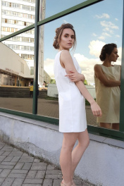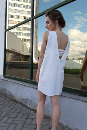 Платье прямого силуэта, длинна 75см, с глубоким вырезом по спинке.
