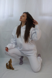 Худи спортивное с воротником-стойкой демисезонное Lady Smile 801 белый