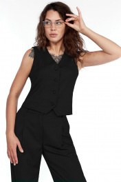 Черный деловой жилет полуприлегающего силуэта из текстиля LadyThreeStars 2431 черный