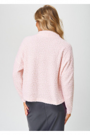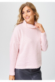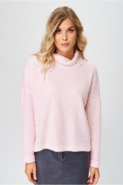 Джемпер женский, свободного силуэта, длиной до линии бедер, со спущенной линией плеча, с втачными рукавами, с втачным воротником-стойкой. Рукава втачные одношовные. Воротник-стойка с отворотом, по горловине слева прикреплено декоративное украшение. Декор может отличаться от представленного на фотографии. Джемпер: длина рукава - 42см, ширина рукава – 19,5см, длина спинки – 60см.