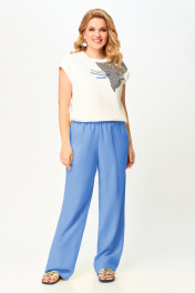 Джемпер с декоративной печатью для повседневных образов Laikony L-291-1 бел+син